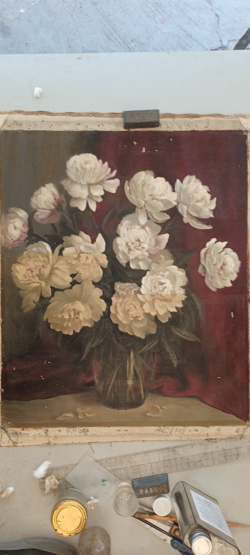 Through meticulous restoration, we repaired a 19th-century floral painting, restoring its damaged parts and returning its colors to their original brilliance. Every detail was carefully tended to, ensuring a harmonious and balanced composition. The painting now looks as it did when first created, full of life and beauty.