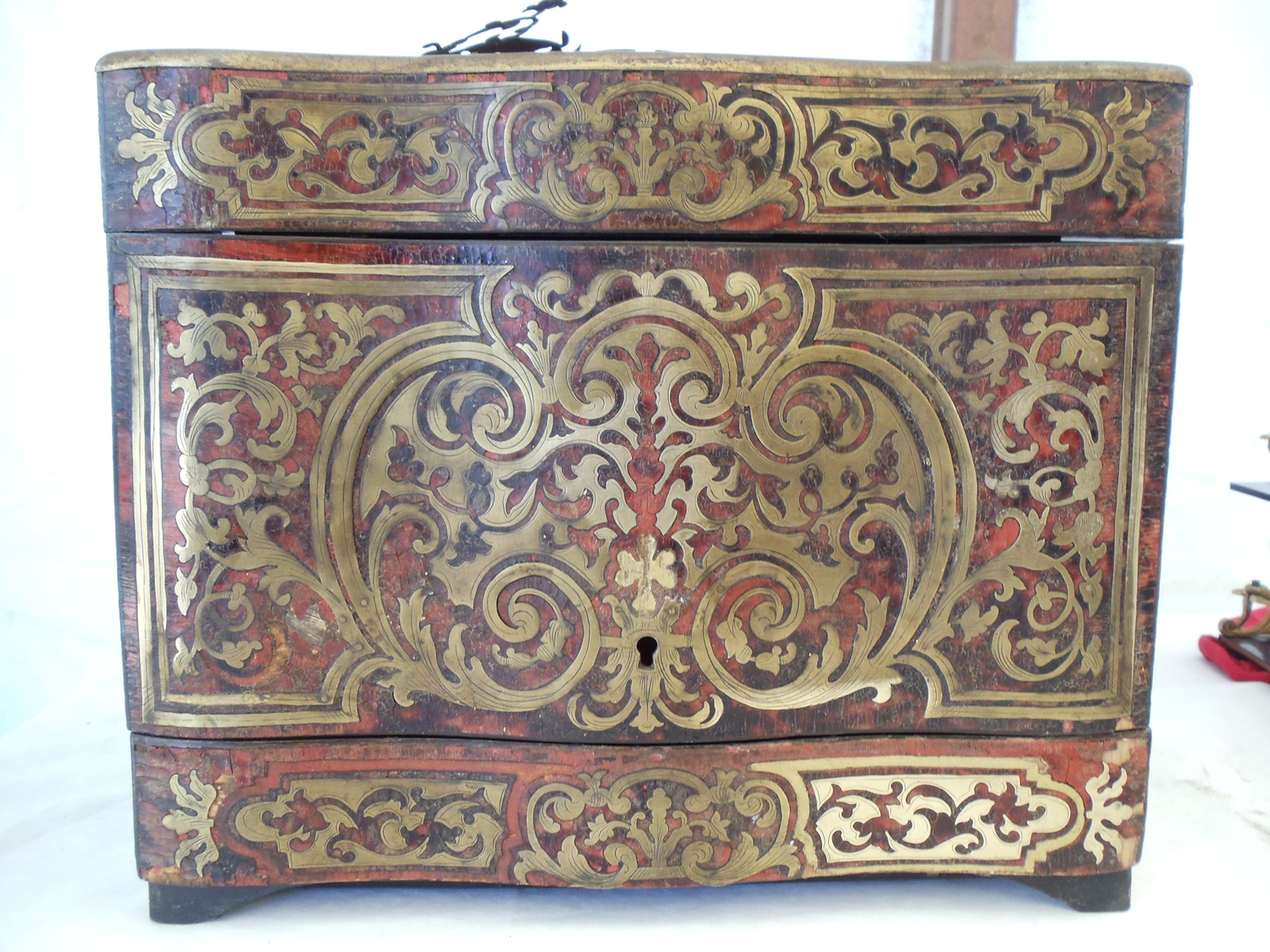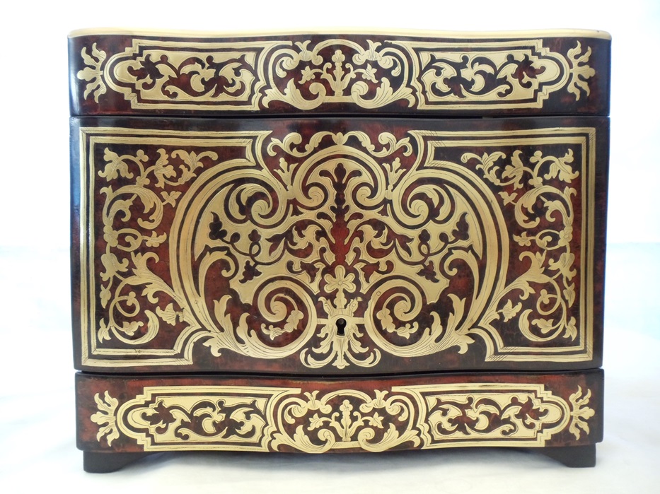 We repaired and matched the material of the XVIII Century Boulle Decanter, restoring its intricate craftsmanship while enhancing its turquoise shell and brass materials. The decanter now radiates timeless elegance, combining historical authenticity with modern durability.